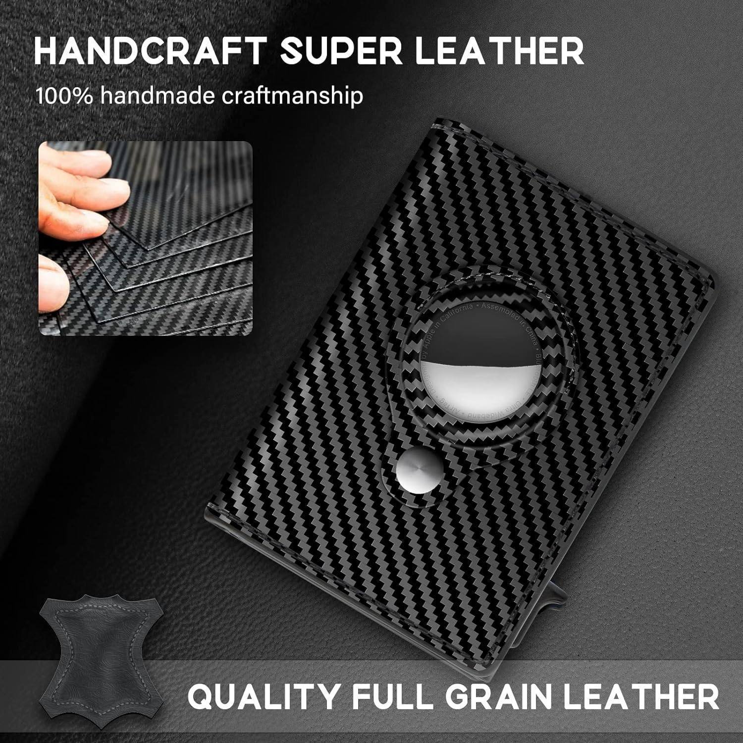 Premium Leather AirTag Carban Black Pop-up Wallet